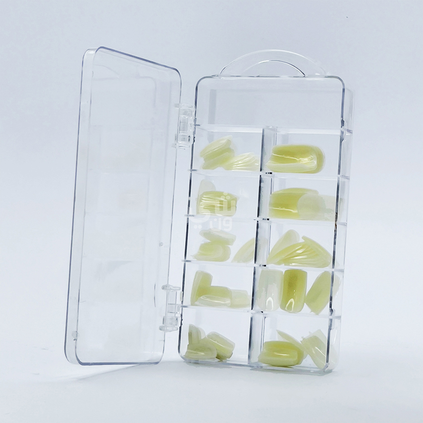 أظافر صناعية بجودة احترافية، تأتي في علبة بلاستيكية شفافة تحتوي على 100 قطعة بأحجام مختلفة. مثالية لصالونات التجميل والاستخدام الشخصي.