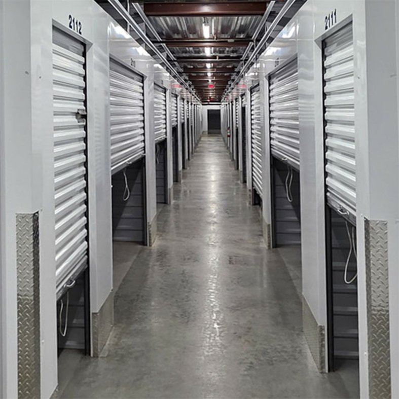 وحدة تخزين متوسطة الحجم (شبيهة بغرفة) داخل المستودع، يمكن إغلاقها بقفل خاص بالعميل.