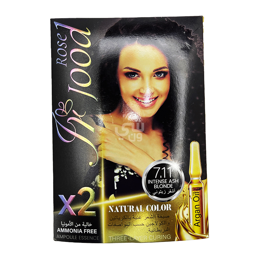 صبغة شعر طبيعية خالية من الأمونيا، بلون أشقر رمادي كثيف (7.11)، غنية بزيت الأرجان ومصممة بتقنية “Three-Layer Curing” لحماية وتغذية الشعر.