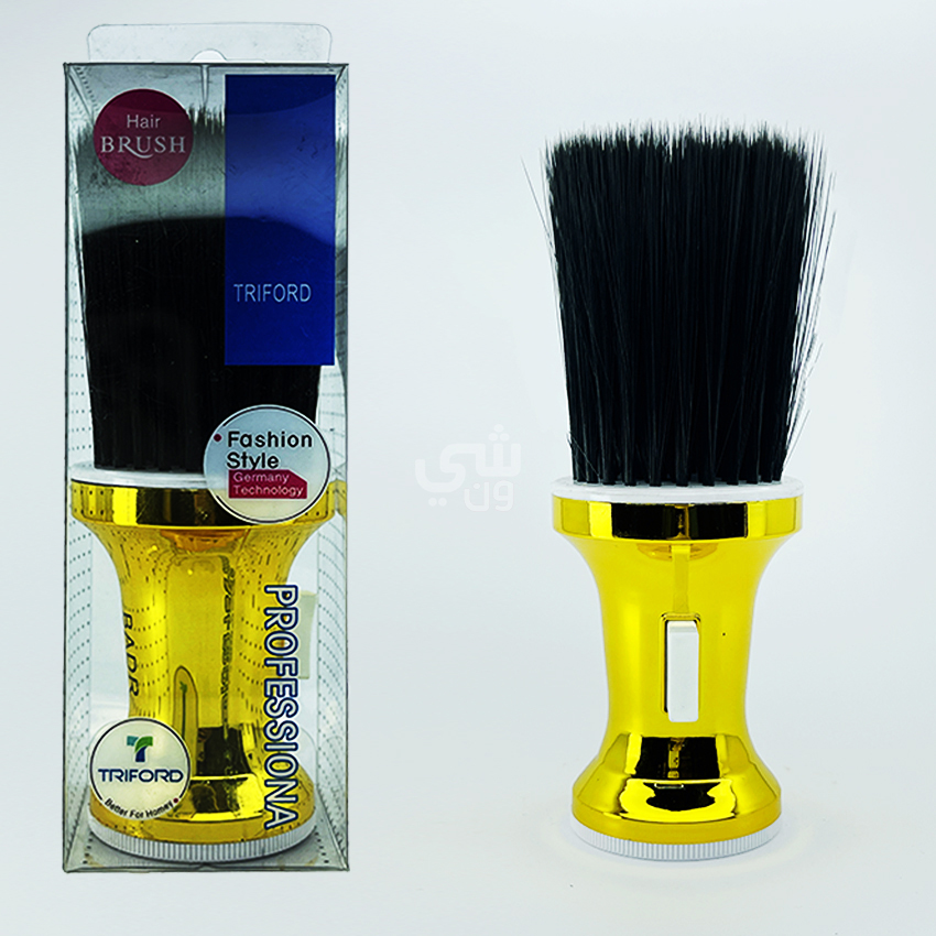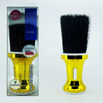 فرشاة شعر احترافية بتصميم أنيق ومقبض ذهبي، مصممة لإزالة بقايا الشعر بعد الحلاقة أو قص الشعر، مثالية للاستخدام في الصالونات. تتميز بشعيرات ناعمة بلونين أبيض وأسود.