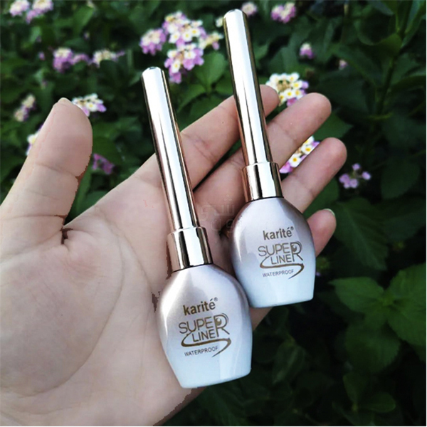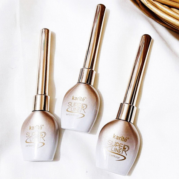 محدد عيون سائل من KARITE بتركيبة “SUPER LINER” ومقاوم للماء، بتصميم أنيق باللون الفضي المتدرج للعبوة.