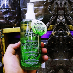 ماء ورد عضوي مع خلاصة الألوفيرا (الصبار)، يعمل على إزالة الإرهاق والتعب، يفتح ويجدد البشرة، ويمنحها إشراقة طبيعية.