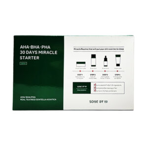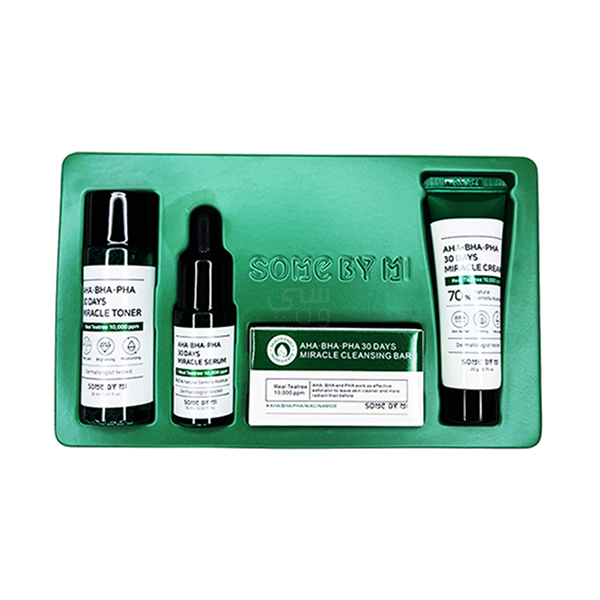 روتين معجزة للعناية بالبشرة يضم 4 خطوات: صابونة تنظيف، تونر، سيروم، وكريم. مصممة لتهدئة مشاكل البشرة وتحسين مظهرها خلال 30 يومًا بتركيبات غنية بـ AHA/BHA/PHA وشجرة الشاي الحقيقية وسينتيلا اسياتيكا.
