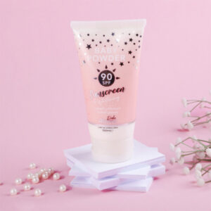 كريم واقي شمس بتركيبة عالية الحماية (SPF 90) مع خصائص مبيضة للبشرة، برائحة بودرة الأطفال. يوفر ترطيبًا وملمسًا غير دهني.